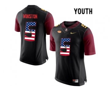 2016 US Flag Fashion-2016 Youth Florida State Seminoles Jameis Winston #5 College Football Limited Jersey - Black