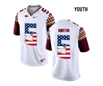 2016 US Flag Fashion-2016 Youth Florida State Seminoles Jameis Winston #5 College Football Limited Jersey - White