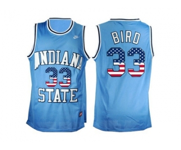 Your Position: Home>NCAA Jersey>Indiana State Sycamores>Men>2016 US Flag Fashion Indiana State Sycamores Larry Bird #33 College Basketball Hardwood Legends Jersey - Blue
