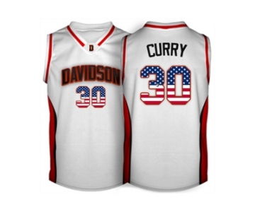 2016 US Flag Fashion Men's Davidson Wildcat Stephen Curry #30 College Basketball Jerseys - White