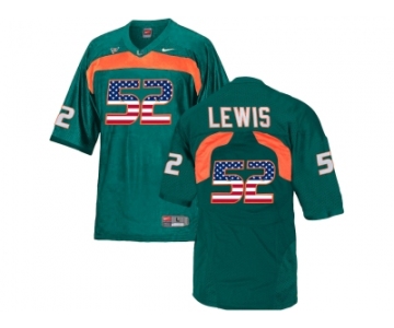 2016 US Flag Fashion Men's Miami Hurricanes Ray Lewis #52 College Football Jersey - Green