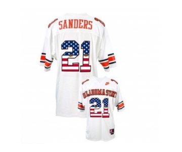 Your Position: Home>NCAA Jersey>Oklahoma State Cowboys>Men>2016 US Flag Fashion Men's Oklahoma State Cowboys Barry Sanders #21 College Football Throwback Jersey - White