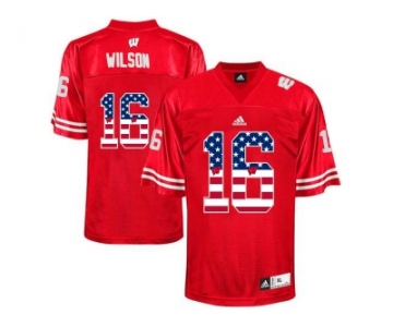 2016 US Flag Fashion-Men's Wisconsin Badgers Russell Wilson #16 College Football Jersey - Red