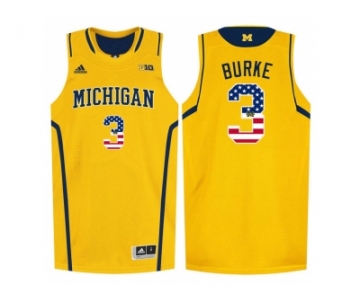 2016 US Flag Fashion-Michigan Wolverines Trey Burke #3 Basketball Authentic Jersey - Yellow