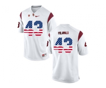 2016 US Flag Fashion USC Trojans Troy Polamalu #43 College Football Jersey - White