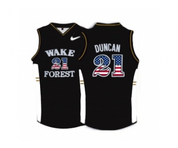 2016 US Flag Fashion Wake Forest Demon Deacons Tim Duncan #21 College Basketball Throwback Jersey - Black