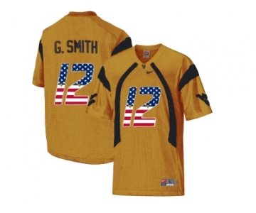 Your Position: Home>NCAA Jersey>West Virginia>Men>2016 US Flag Fashion West Virginia Mountaineers Geno Smith #12 College Football Mesh Jersey - Gold
