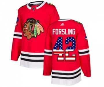 Adidas Chicago Blackhawks #42 Gustav Forsling Authentic Red USA Flag Fashion NHL Jersey