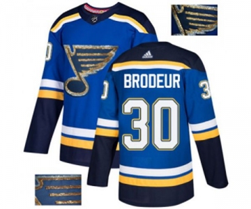 Adidas St. Louis Blues #30 Martin Brodeur Authentic Royal Blue Fashion Gold NHL Jersey