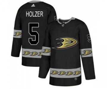 Anaheim Ducks #5 Korbinian Holzer Premier Black Team Logo Fashion Hockey Jersey