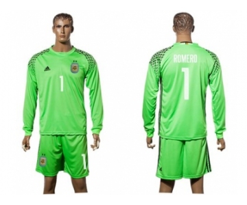 Argentina #1 Romero Green Goalkeeper Long Sleeves Soccer Country Jersey 1