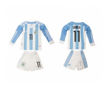 Argentina #11 Lamela Home Long Sleeves Kid Soccer Country Jersey