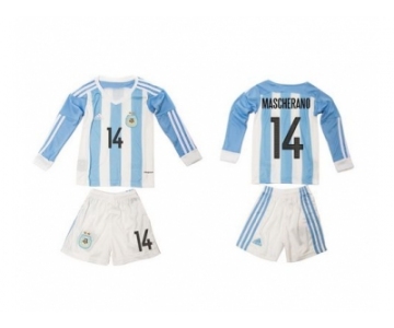Argentina #14 Mascherano Home Long Sleeves Kid Soccer Country Jersey