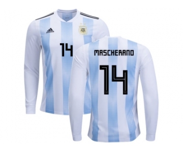 Argentina #14 Mascherano Home Long Sleeves Kid Soccer Country Jerseys