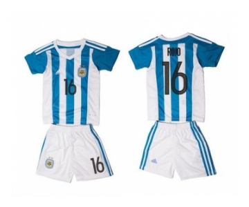 Argentina #16 Rojo Home Kid Soccer Country Jersey1