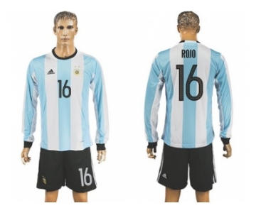 Argentina #16 Rojo Home Long Sleeves Soccer Country Jersey