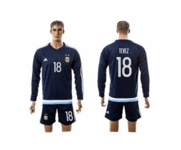 Argentina #18 Tevez Away Long Sleeves Soccer Country Jersey