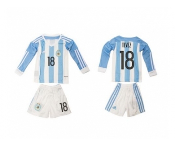 Argentina #18 Tevez Home Long Sleeves Kid Soccer Country Jersey