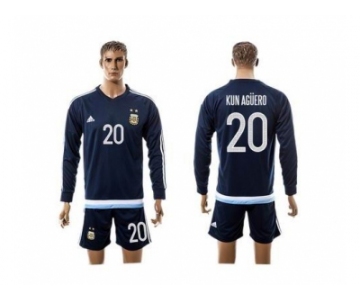 Argentina #20 Kun Aguero Away Long Sleeves Soccer Country Jersey