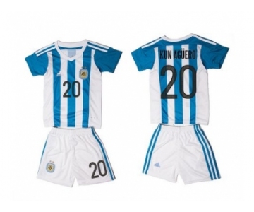 Argentina #20 Kun Aguero Home Kid Soccer Country Jersey1