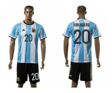 Argentina #20 Kun Aguero Home Soccer Country Jersey