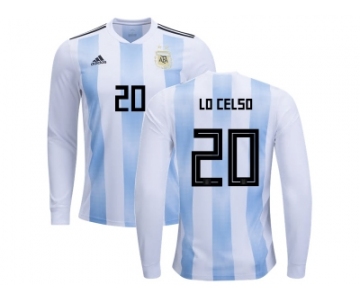 Argentina #20 Lo Celso Home Long Sleeves Kid Soccer Country Jersey
