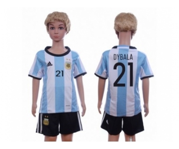 Argentina #21 Dybala Home Kid Soccer Country Jersey