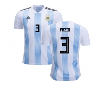Argentina #3 Fazio Home Kid Soccer Country Jersey