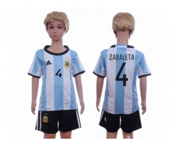 Argentina #4 Zabaleta Home Kid Soccer Country Jersey