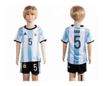 Argentina #5 Gago Home Kid Soccer Country Jersey