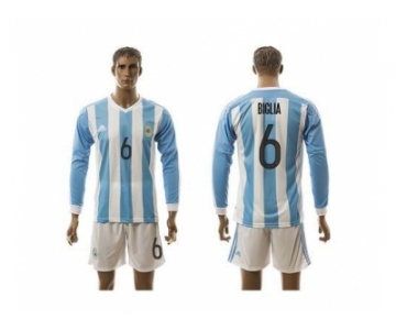 Argentina #6 Biglia Home Long Sleeves Soccer Country Jersey2