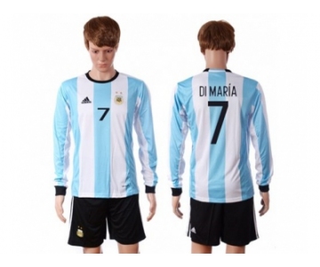 Argentina #7 Di Maria Home Long Sleeves Soccer Country Jersey