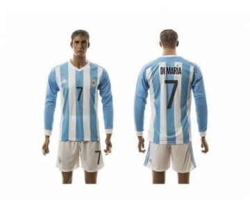 Argentina #7 Di Maria Home Long Sleeves Soccer Country Jersey2