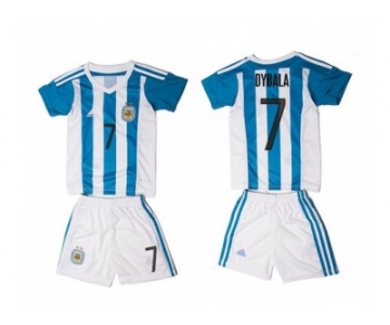 Argentina #7 Dybala Home Kid Soccer Country Jersey1