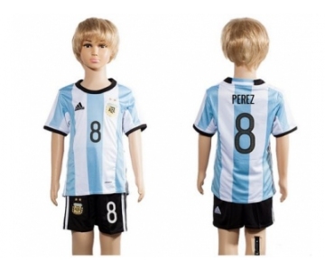 Argentina #8 Perez Home Kid Soccer Country Jersey