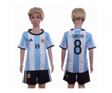 Argentina #8 Simoni Home Kid Soccer Country Jersey
