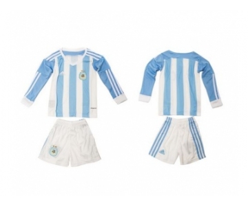 Argentina Blank Home Long Sleeves Kid Soccer Country Jersey