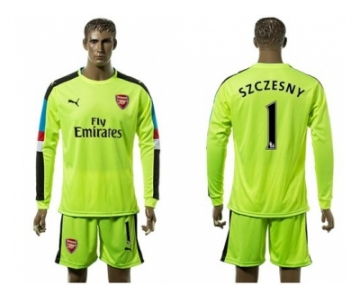 Arsenal #1 Szczesny Shiny Green Goalkeeper Long Sleeves Soccer Club Jersey