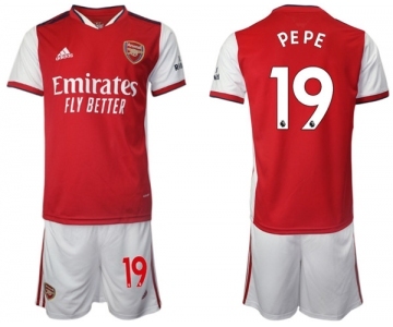 Arsenal F.C #19 Nicolas Pépé Red Home Soccer Jersey with Shorts