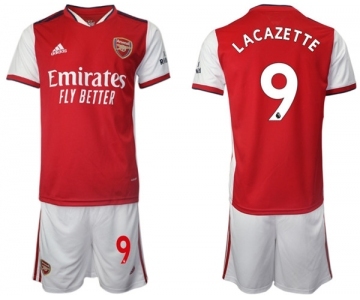 Arsenal F.C #9 Lacazette Red Home Soccer Jersey with Shorts