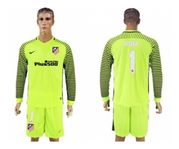 Atletico Madrid #1 Moya Green Goalkeeper Long Sleeves Soccer Club Jersey