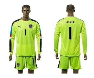 Austria #1 Almer Shiny Green Goalkeeper Long Sleeves Soccer Country Jersey