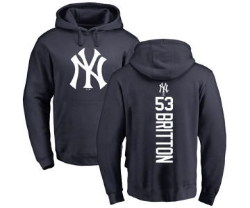 Baseball New York Yankees #53 Zach Britton Navy Blue Backer Pullover Hoodie