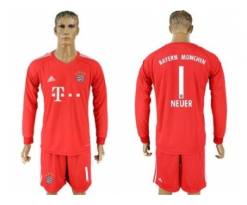 Bayern Munchen #1 Neuer Red Goalkeeper Long Sleeves Soccer Club Jersey