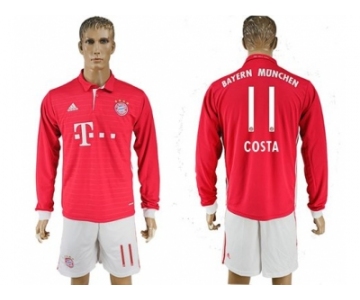 Bayern Munchen #11 Costa Home Long Sleeves Soccer Club Jersey