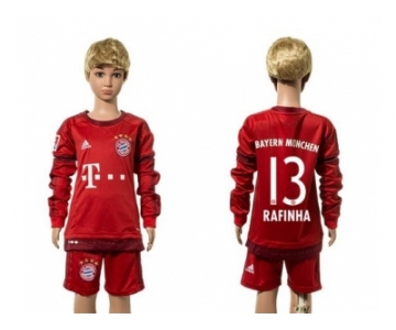 Bayern Munchen #13 Rafinha Home Long Sleeves Kid Soccer Club Jersey