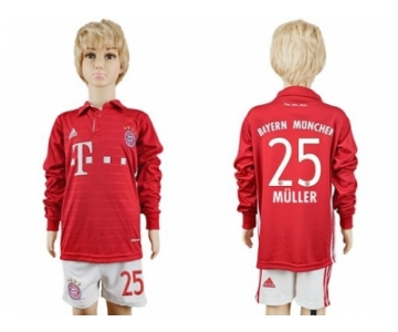 Bayern Munchen #25 Muller Home Long Sleeves Kid Soccer Club Jersey