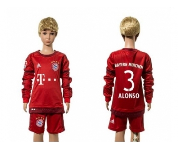 Bayern Munchen #3 Alonso Home Long Sleeves Kid Soccer Club Jersey