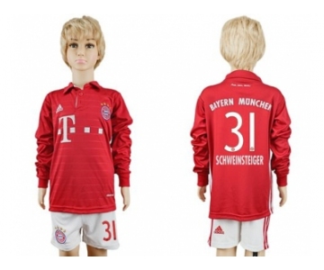 Bayern Munchen #31 Schweinsteiger Home Long Sleeves Kid Soccer Club Jersey