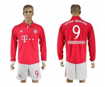 Bayern Munchen #9 Lewandowski Home Long Sleeves Soccer Club Jersey